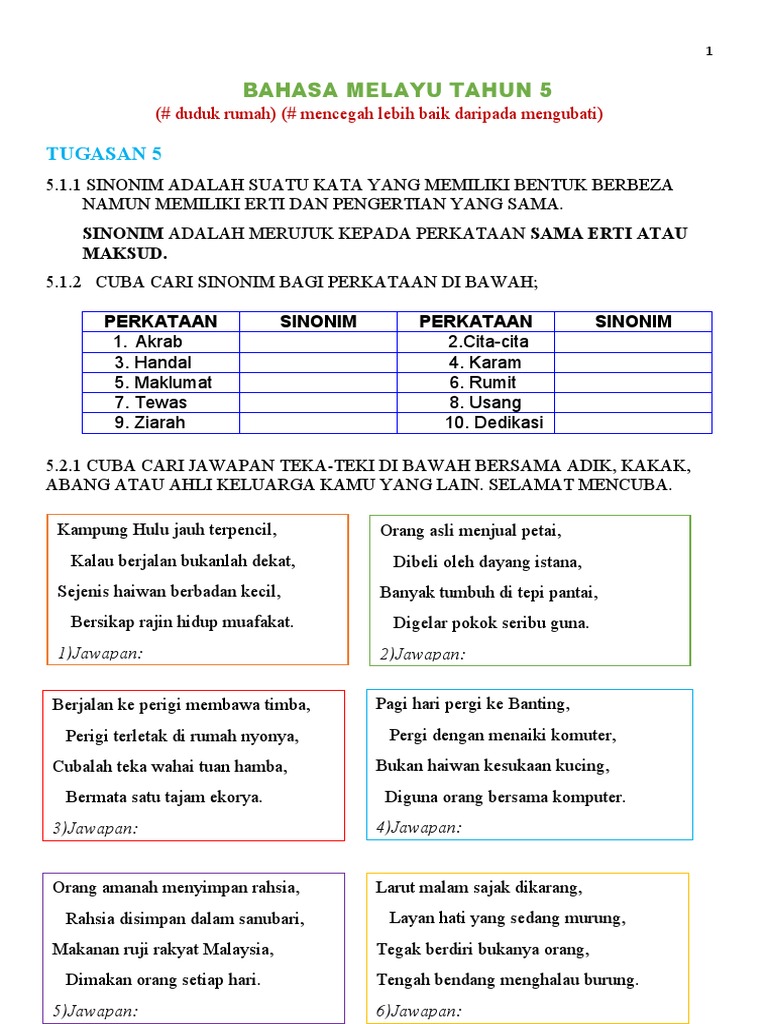 Bahasa Melayu Tahun 5 Tugasan 5 Jawapan Tugasan2 Pdf